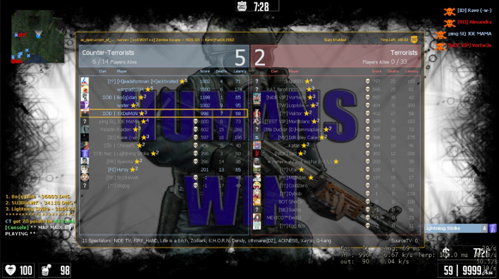Zombie Escape Mini Event #3 01/05/2020 - 3 pm GMT+0 ze_destruction_of_exorath_re3 mini event Don't forget to join the us Goodluck! 3 Days of VIP to winners! Event information: We will play the following map(s): ze_destruction_of_exorath_re3 (which you can download manually here) the map has 5 stages Time of the event: 01 /05/2020 at 3 pm GMT+0 Special rules: Rules will be enforced strictly in all the maps. Spam in the microphone and trolling will not be allowed and will be punished directly, without a warning. Leader: Any willing one. Rewards: 3 days of VIP to winners, for winning the last stage , stage 5. Connect information: Server: Zombie Escape IP: 149.202.65.122:27072 Steam event link: NiDE Steam Group