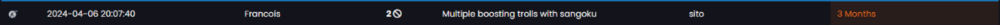 I think you're blind or something, as you can see 1 eban of those i literally ebanned myself there just for the fun, and those 2 that Weeed gave me were also funny ebans, as you can see the 3 ebans next to the duration says (Removed), i don't know also why you insult me when i didn't say anything offensive to you, i was just giving my point of view of your application, a bit childish for a 26 years old man